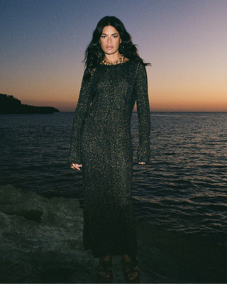 The Beach Bar Robe in After Dark is a luxe layering piece infused with effortless elegance and a touch of bohemian glamour. Crafted from a blend of organic cotton and LENZING™ ECOVERO™ Viscose with a hint of metallic shimmer, this robe is as sustainable as it is stunning. The maxi length, detachable tie belt, and patch pockets offer a balance of functionality and sophistication, while the intricate border placement print graces the front, back, and sleeves with Spell’s signature artistry.
